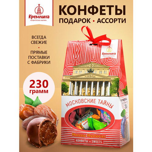 Набор конфет Ассорти Фрукты и Орехи Шоколадные в подарочной в коробке "Красные Московские тайны", подарок на 1 сентября учителю 240 грамм