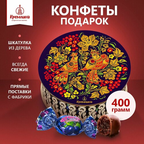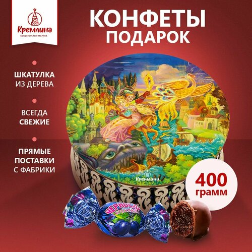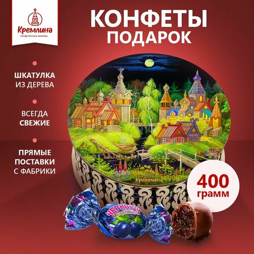Подарок новогодний, набор подарочных конфет маме Чернослив Шоколадный в резной шкатулке "Берендеево царство. Лето", 400 грамм
