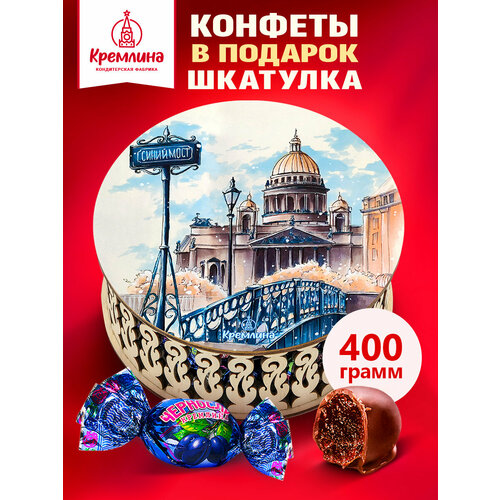 Подарок новогодний, набор подарочных конфет Чернослив Шоколадный в резной шкатулке "Синий Мост", 400 грамм