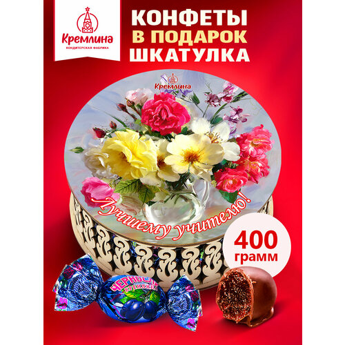 Подарок новогодний, набор подарочных конфет учителю Чернослив Шоколадный в резной шкатулке "Лучшему Учителю", 400 грамм