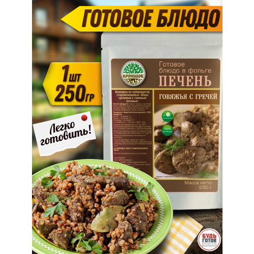 1 шт. Кронидов готовое блюдо Печень Говяжья с гречей, 250 г, собой / в поход / готовая еда / в поезд / в дорогу