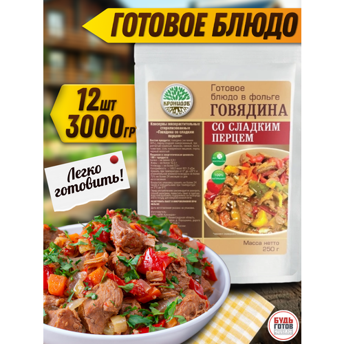 12 шт. Кронидов готовое блюдо Говядина со сладким перцем, 250 г, собой / в поход / готовая еда / в поезд / в дорогу