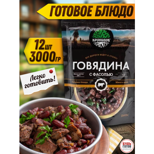 12 шт. Кронидов готовое блюдо Говядина с фасолью, 250 г, собой / в поход / готовая еда / туризм / в поезд / в дорогу