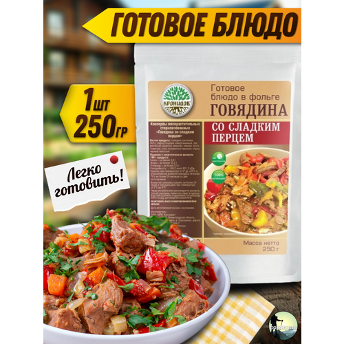 1 шт. Кронидов готовое блюдо Говядина со сладким перцем, 250 г, собой / в поход / готовая еда / в поезд / в дорогу