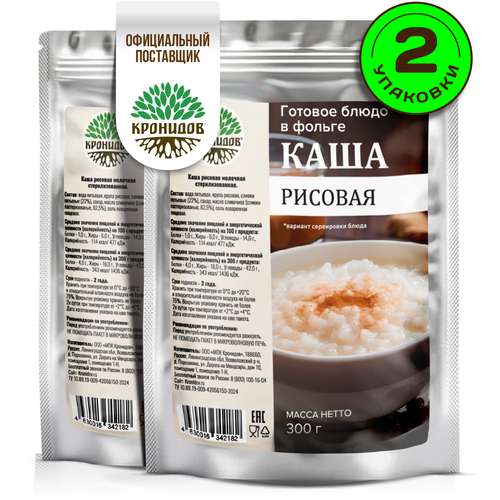 Каша молочная рисовая Готовое блюдо в реторт-пакете ТМ Кронидов. Консерва Набор 2 шт. по 300 г