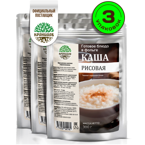 Каша молочная рисовая Готовое блюдо в реторт-пакете ТМ Кронидов. Консерва Набор 3 шт. по 300 г