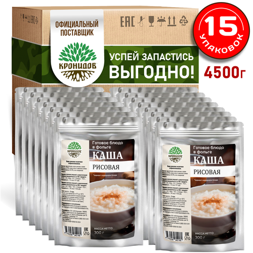 Каша молочная рисовая Готовое блюдо в реторт-пакете ТМ Кронидов. Консерва Набор 15 шт. по 300 г