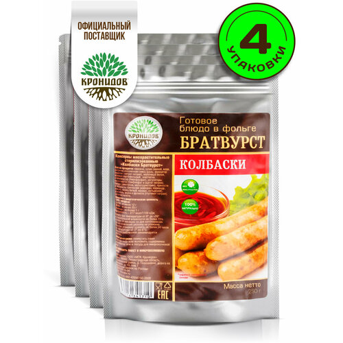Колбаски Братвурст Готовое блюдо в реторт-пакете ТМ Кронидов. Консерва Набор 4 шт. по 250 г