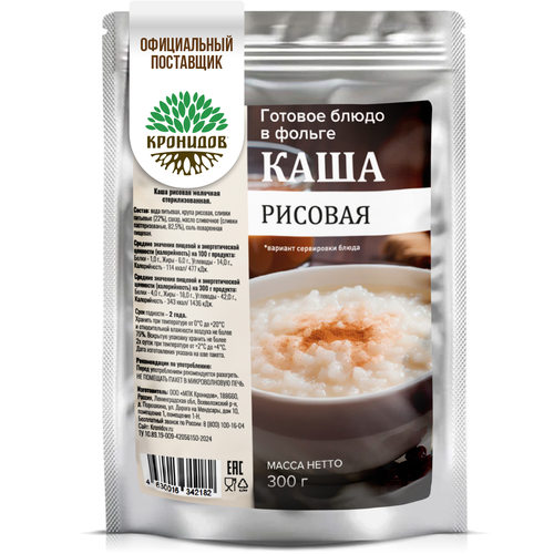Каша молочная рисовая Готовое блюдо в реторт-пакете ТМ Кронидов. Консерва 300 г
