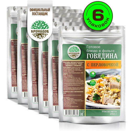 Каша перловая с говядиной Готовое блюдо в реторт-пакете ТМ Кронидов. Консерва Набор 6 шт. по 250 г