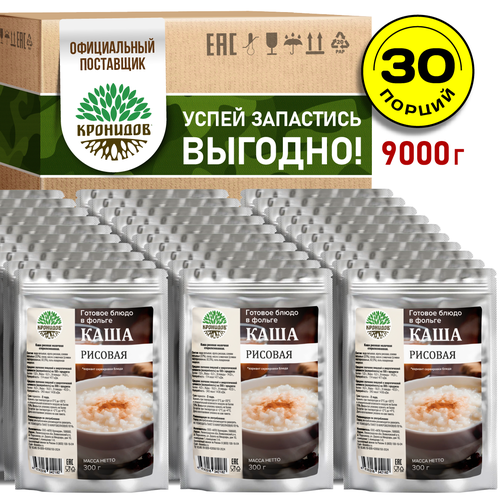 Каша молочная рисовая Готовое блюдо в реторт-пакете ТМ Кронидов. Консерва Набор 30 шт. по 300 г