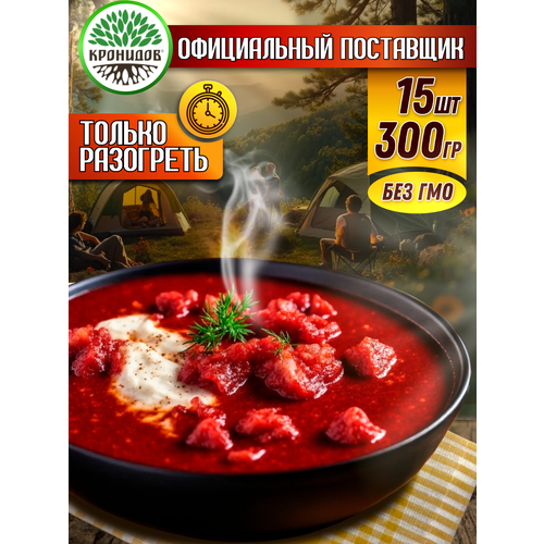 15 шт. Кронидов готовое блюдо Борщ, 300 г, собой / в поход / готовая еда / туризм / в поезд / в дорогу