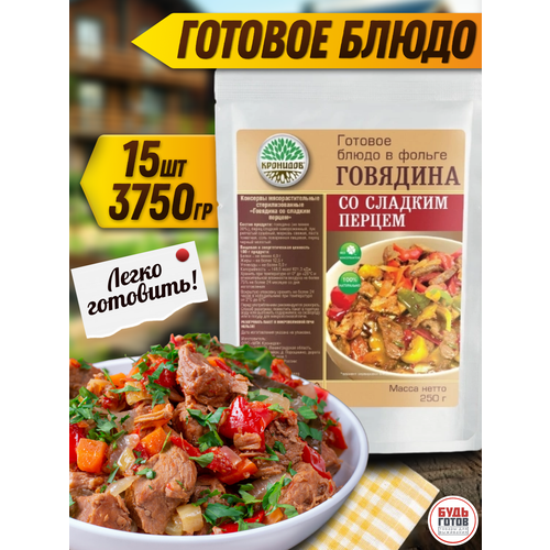 15 шт. Кронидов готовое блюдо Говядина со сладким перцем, 250 г, собой / в поход / готовая еда / в поезд / в дорогу