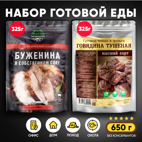 Кронидов Набор из 2 готовых блюд в фольге Буженина в с/c, Говядина Тушеная