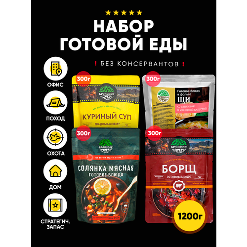 Кронидов Набор из 4 готовых блюд в реторт-пакете Борщ/Cолянка/Щи со свининой/Суп куриный по-домашнему