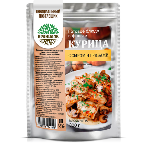 Курица с сыром и грибами Кронидов 300 грамм 2 упаковки еда собой на выход в дорогу