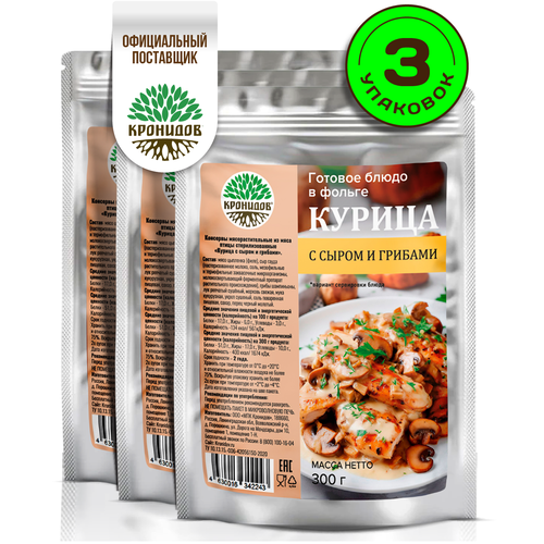 Курица с сыром и грибами Готовое блюдо в реторт-пакете ТМ Кронидов. Консерва Набор 3 шт. по 300 г