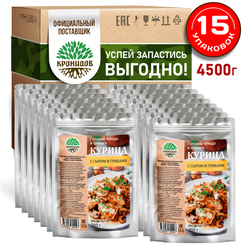 Курица с сыром и грибами Готовое блюдо в реторт-пакете ТМ Кронидов. Консерва Набор 15 шт. по 300 г