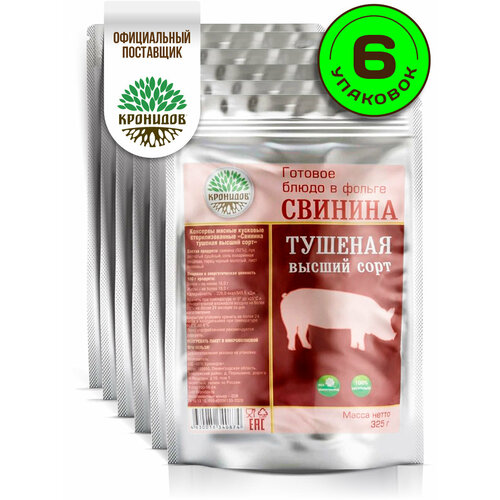 Свинина тушеная. Высший сорт Готовое блюдо в реторт-пакете ТМ Кронидов. Консерва Набор 6 шт. по 325 г
