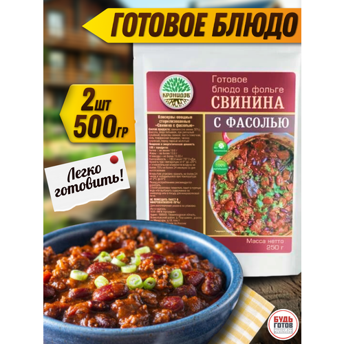 Свинина с фасолью "Кронидов" 250 г, 2 упаковки / Готовая еда / Блюдо быстрого приготовления / Туристическая еда / Еда в поход / Еда с собой / Сублима