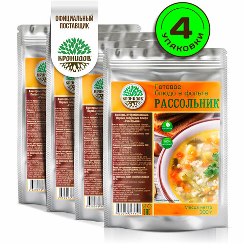 Рассольник Готовое блюдо в реторт-пакете ТМ Кронидов. Консерва Набор 4 шт. по 300 г