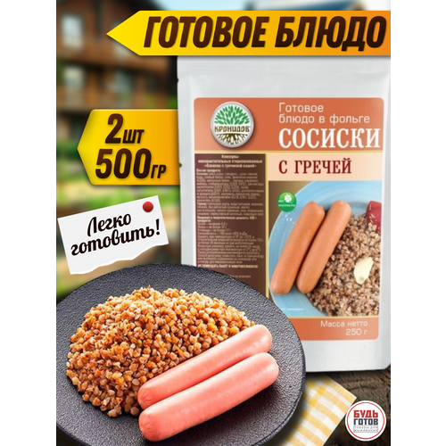 Сосиски с гречей "Кронидов" 250 г, 2 упаковки / Готовая еда / Блюдо быстрого приготовления / Туристическая еда / Еда в поход / Еда с собой / Сублимат