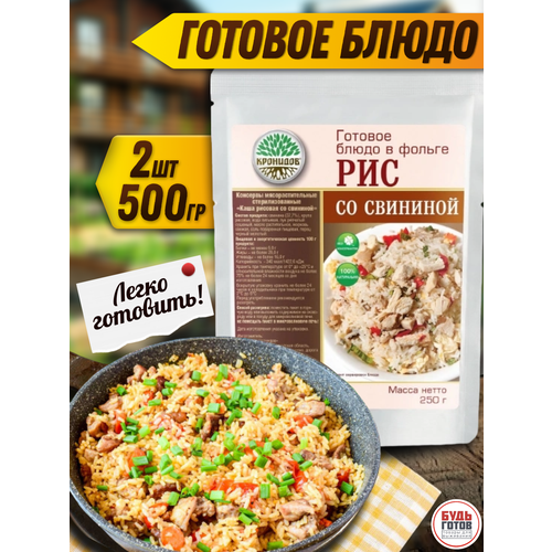 Рис со свининой "Кронидов" 250 г, 2 упаковки / Готовая еда / Блюдо быстрого приготовления / Туристическая еда / Еда в поход / Еда с собой / Сублиматы