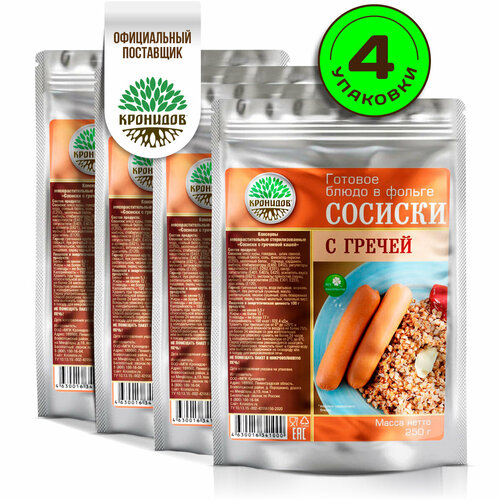 Сосиски с гречей Готовое блюдо в реторт-пакете ТМ Кронидов. Консерва Набор 4 шт. по 250 г