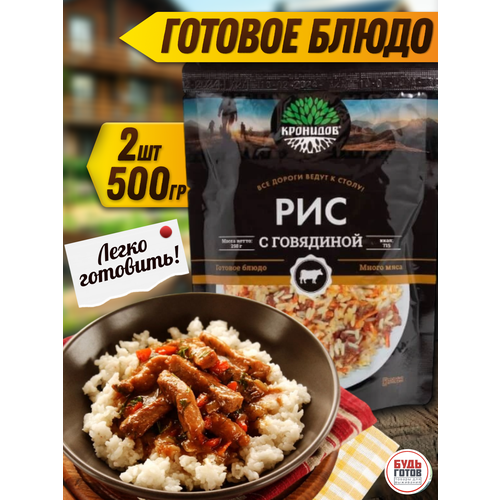 Рис с говядиной "Кронидов" 250 г, 2 упаковки / Готовая еда / Блюдо быстрого приготовления / Туристическая еда / Еда в поход / Еда с собой / Сублиматы