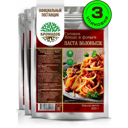 Паста Болоньезе Готовое блюдо в реторт-пакете ТМ Кронидов. Консерва Набор 3 шт. по 300 г
