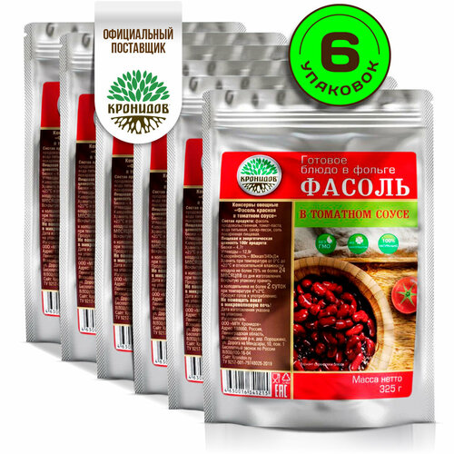 Фасоль красная в томатном соусе Готовое блюдо в реторт-пакете ТМ Кронидов. Консерва Набор 6 шт. по 325 г