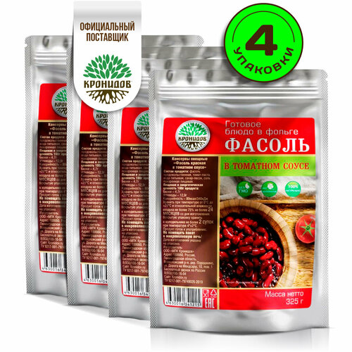 Фасоль красная в томатном соусе Готовое блюдо в реторт-пакете ТМ Кронидов. Консерва Набор 4 шт. по 325 г