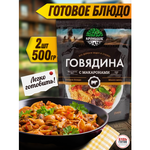 Говядина с макаронами "Кронидов" 250 г, 2 упаковки, готовая еда в упаковке