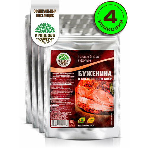 Буженина в собственном соку Готовое блюдо в реторт-пакете ТМ Кронидов. Консерва Набор 4 шт. по 325 г
