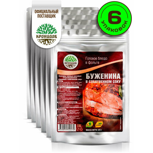 Буженина в собственном соку Готовое блюдо в реторт-пакете ТМ Кронидов. Консерва Набор 6 шт. по 325 г