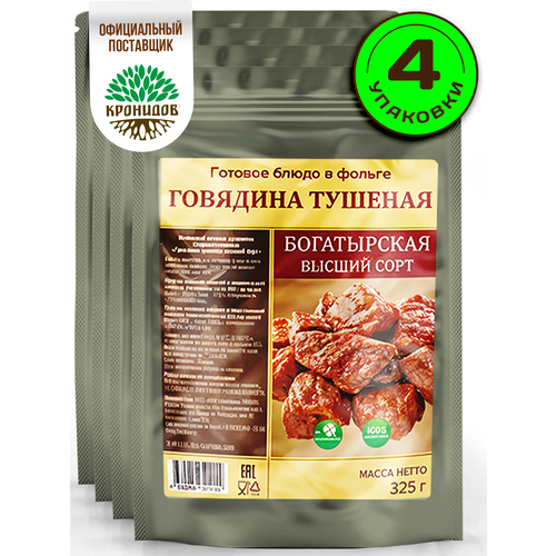Говядина Богатырская. Высший сорт Готовое блюдо в реторт-пакете ТМ Кронидов. Консерва Набор 4 шт. по 325 г
