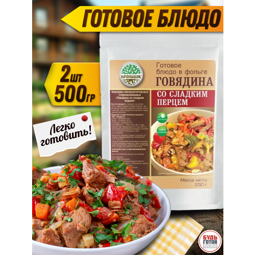Говядина со сладким перцем "Кронидов" 250 г, 2 упаковки / Готовая еда / Блюдо быстрого приготовления / Туристическая еда / Еда в поход / Еда с собой