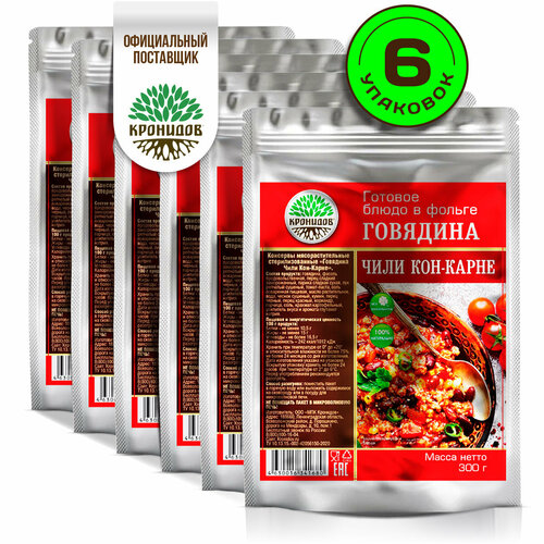 Говядина "Чили Кон Карне" с фасолью Готовое блюдо в реторт-пакете ТМ Кронидов. Консерва Набор 6 шт. по 300 г