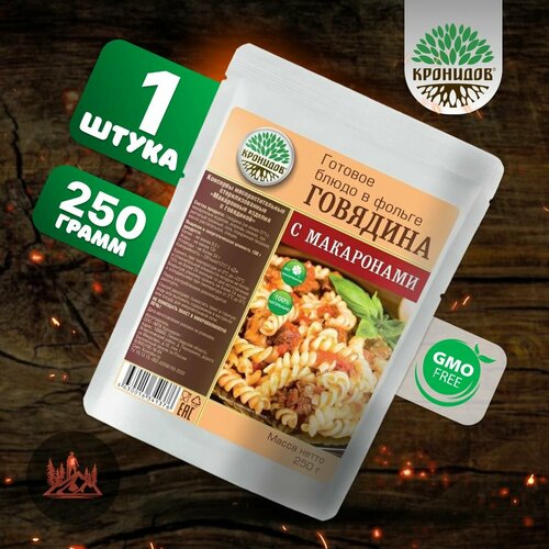 Говядина с макаронами "Кронидов" 250 г, 1 упаковки, готовая еда в упаковке