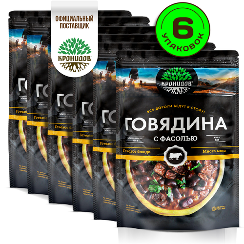 Говядина с фасолью Готовое блюдо в реторт-пакете ТМ Кронидов. Консерва Набор 6 шт. по 250 г