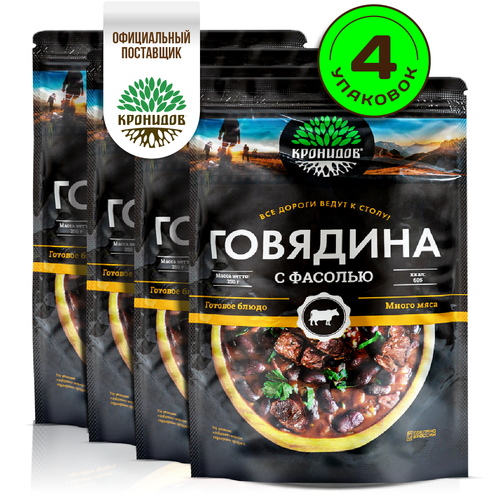 Говядина с фасолью Готовое блюдо в реторт-пакете ТМ Кронидов. Консерва Набор 4 шт. по 250 г