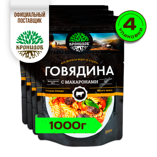 Говядина с макаронами Готовое блюдо в реторт-пакете ТМ Кронидов. Консерва Набор 4 шт. по 250 г
