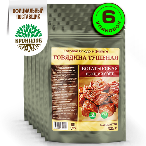 Говядина Богатырская. Высший сорт Готовое блюдо в реторт-пакете ТМ Кронидов. Консерва Набор 6 шт. по 325 г