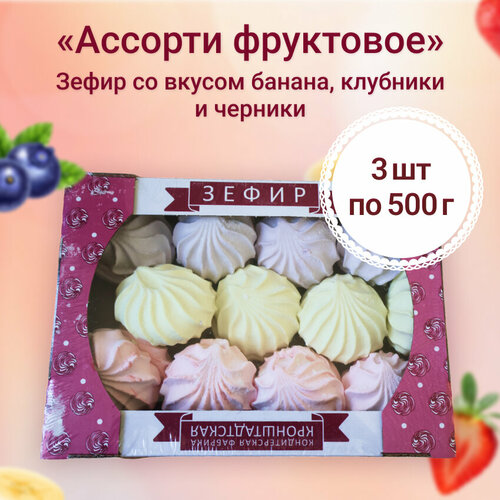 Зефир КФ Кронштадтская Фруктовое ассорти (банан, черника, клубника) 500гр (3шт)