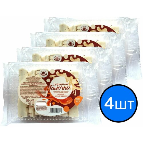 Зефирные палочки глазированные белой глазурью с начинкой соленая карамель КФ кронштадтская, 200г х 4шт