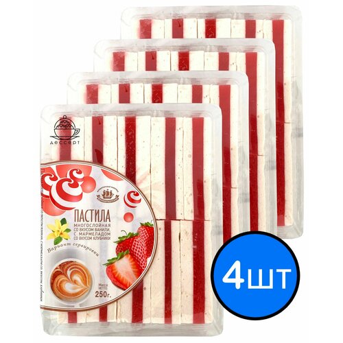 Пастила многослойная ванильная, с мармеладом/клубника, 250г х 4шт