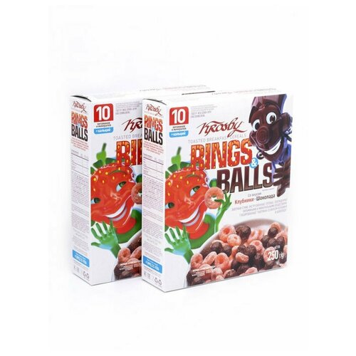 Готовый завтрак Krosby Rings&Balls со вкусом Клубники и Шоколада, 250 г 2 пачки