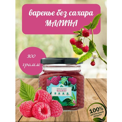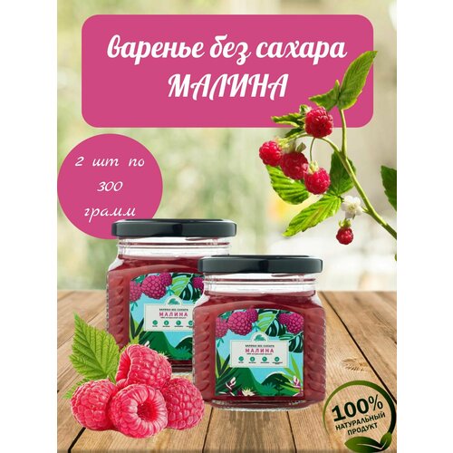 Варенье без сахара Малина, в наборе 2 штуки по 300 грамм, "Кудесникъ"