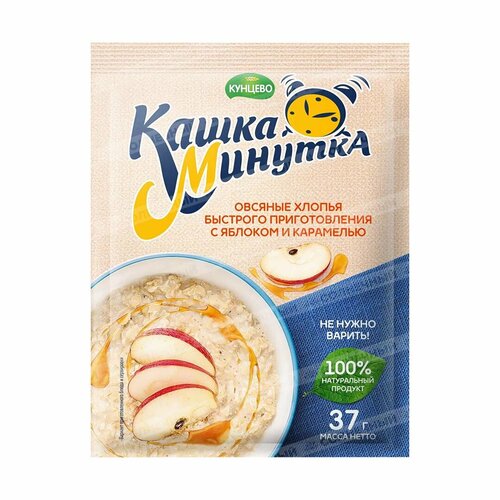 Кашка-минутка Кунцево, с яблоком, карамелью, овсяная, без варки, 25 пакетиков