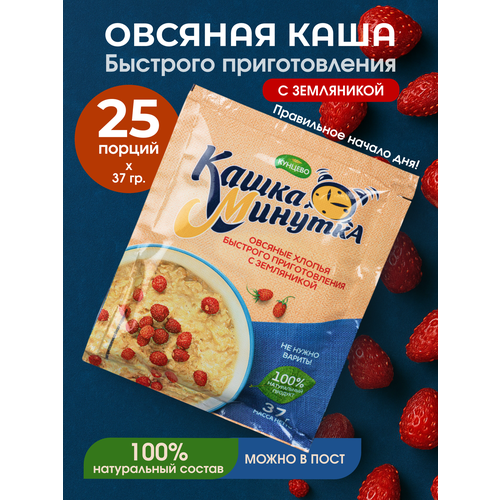 Овсяная каша быстрого приготовления "Кашка-Минутка" с земляникой 25 штук по 37 г.